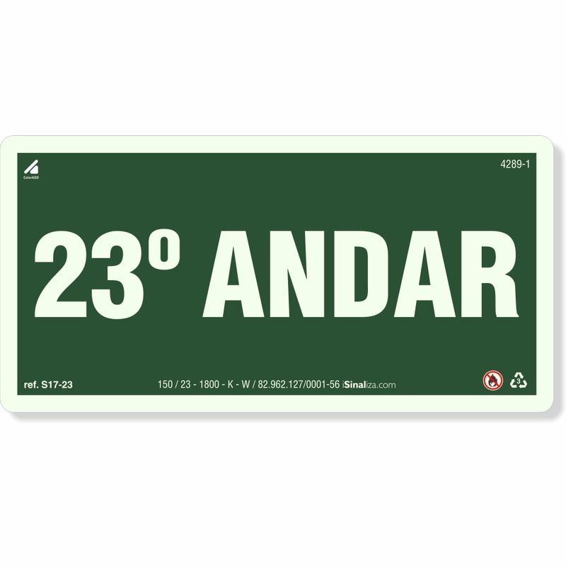Placa 23 Andar Fotoluminescente S17
