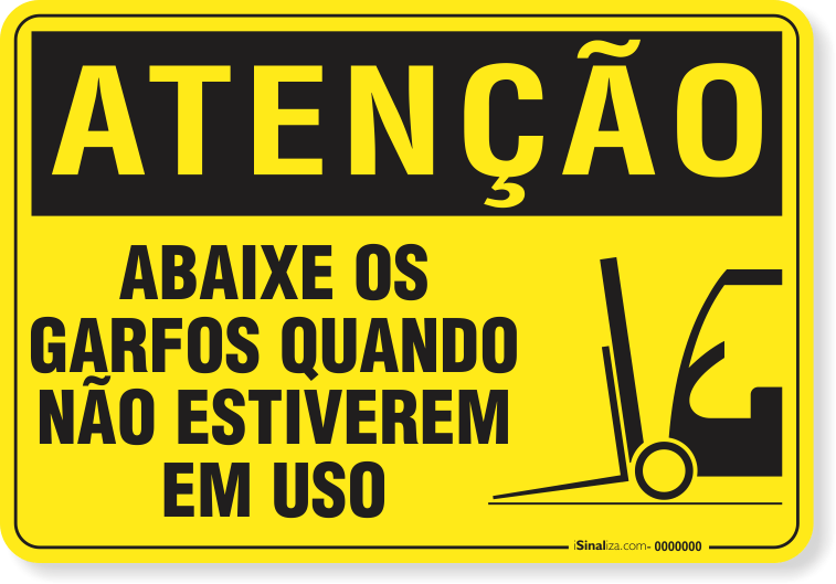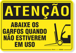Ambiente de TrabalhoEmpilhadeiraPlaca Atenção Abaixe Os Garfos Quando Não Estiverem Em Uso