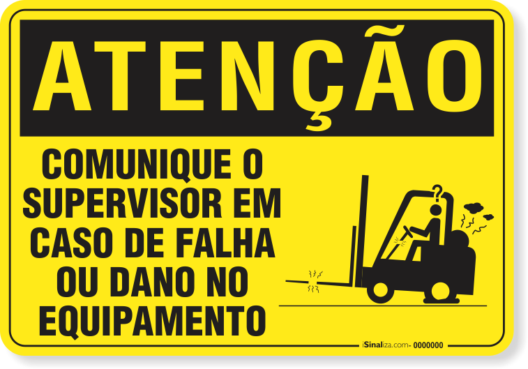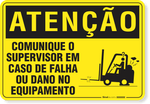 Ambiente de TrabalhoEmpilhadeiraPlaca Atenção Comunique O Supervisor Em Caso De Falha Ou Dano Do Equipamento