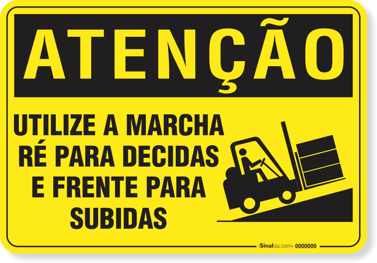 Ambiente de TrabalhoEmpilhadeiraPlaca Atenção Utilize A Marcha Ré Para Descidas E Frente Para Subidas