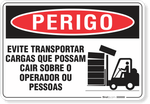 Ambiente de TrabalhoEmpilhadeiraPlaca Perigo Evite Transportar Cargas Que Possam Cair Sobre Pessoas