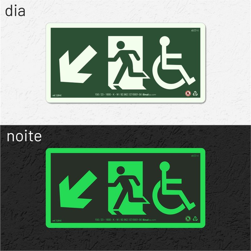 Placa Saída De Emergência Cadeirante Seta Esquerda Baixo Fotoluminescente S38-E