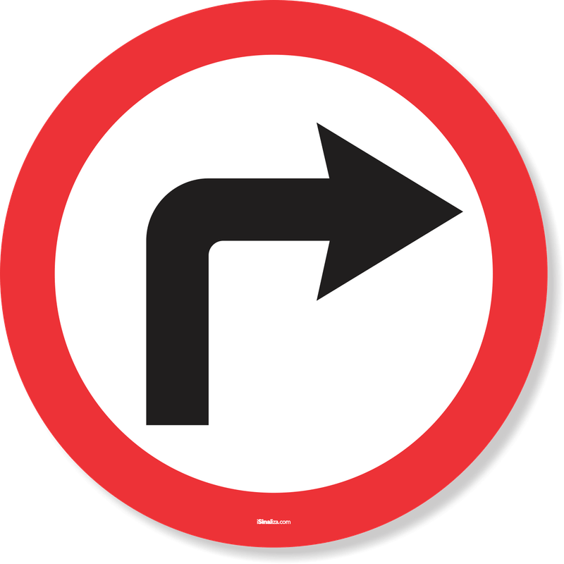A placa “Vire À Direita R-25B”, adverte ao motorista que a conversão obrigatória a direita.
